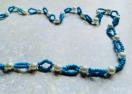 青と白のビーズを使用した独特のデザインが特徴です。パールがアクセントとなり、華やかさを演出します。