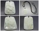 より明るい色合いAAA本翡翠ジェダイトキリン手彫りペンダントトップサイズ約48x33x6mm