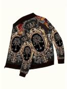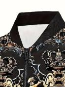 メンズバロッククラウンプリントカジュアルソフトシェルジャケットスタンドカラージッパー開閉