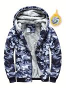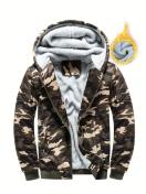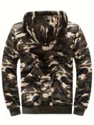 ポケット付きメンズスタイリッシュ迷彩柄フリースフーディー、カジュアルジップアップ長袖暖かいフード付きスウェットシャツ、アウトドアアクティビティ向け