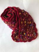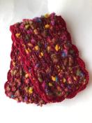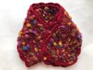 レッド地にカラフルポップカラーの毛糸でミニマフラーを編みました。