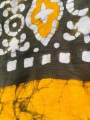 このストールは、黒と黄色のコントラストが美しい花柄と幾何学模様でデザインされています。どんなスタイルにも合わせやすく、特別なアクセントを加えます。
