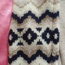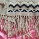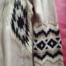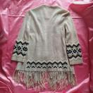 ┗お尻もスッポリ隠れる体型カバーで安心♪パンツスタイルやスカートスタイルどちらにもオススメです♪袖丈が短めで作業もしやすい♪フリンジが、とても可愛いです♪ゴールドラメ糸入りのオルテガ柄がキラキラお洒落な長袖ニットトッパーカーディガンです☆厚すぎず薄すぎす秋、冬、春の3シーズン着回せて便利ですよ♪