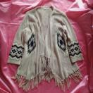 ┗お尻もスッポリ隠れる体型カバーで安心♪パンツスタイルやスカートスタイルどちらにもオススメです♪袖丈が短めで作業もしやすい♪フリンジが、とても可愛いです♪ゴールドラメ糸入りのオルテガ柄がキラキラお洒落な長袖ニットトッパーカーディガンです☆厚すぎず薄すぎす秋、冬、春の3シーズン着回せて便利ですよ♪