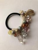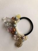 キラキラビーズ を盛り盛り編み込んでヘアゴム を作りました。