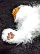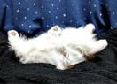 触ると、瞬きやゴロゴロと喉を鳴らしたり、にゃーんと甘えた声でないたり、前足で顔を洗ったり、上半身をゴロンと後ろに反らしたりします。