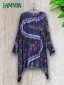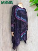ネイビー、パープルベースのタイダイ長袖チュニックです。