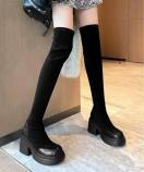 異素材をミックスした、個性あふれるデザインのスタイリッシュなニーハイブーツです