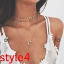 このネックレスは、シンプルでありながらスタイリッシュな重ね付けデザインが特徴です。月の形のペンダントがアクセントとなり、カジュアルからフォーマルまで幅広いスタイルにマッチします。