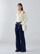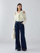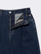 rokh(ロク)とジーユーのスペシャルコラボレーション。裾のロールアップデザインが特徴のデニムジーンズ。裾のタブベルトで丈の長さ調整が可能。前振りのサイドシームにこだわりを見せ、ウエストにタックを入れたワイドシルエットの仕上がり。ストレッチ素材。