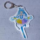 ○ブルジュラから発売されていた「スタートゥインクルプリキュア チェンジングアクリルキーホルダー」のキュアコスモです。見る角度によってユニの絵にになります。