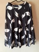 スカート 黒 フレアスカート ロングスカート 大きいサイズ 日本製 裏地付き ブラック 膝下丈 レディース 柄 W69