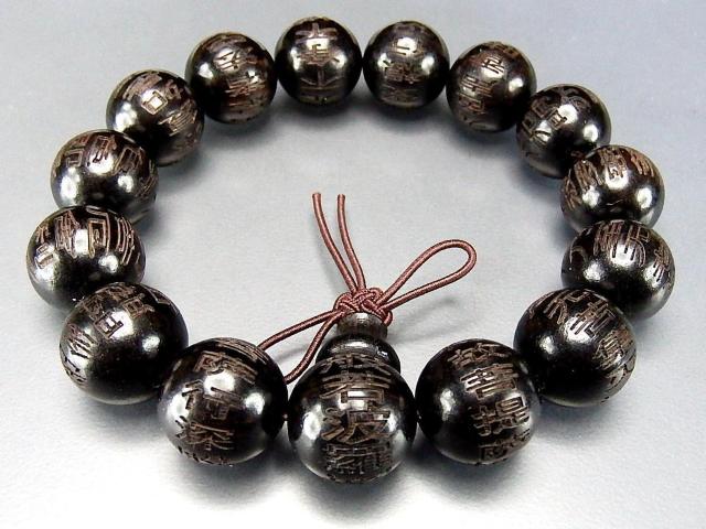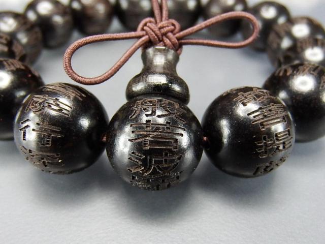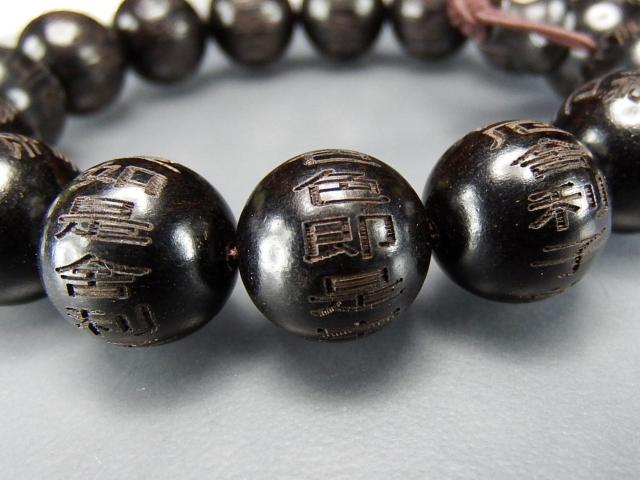 良質黒檀木般若心経中文漢字素彫り約15mm円玉