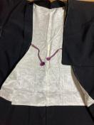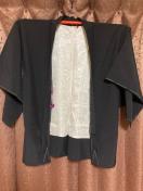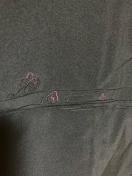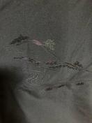 黒地に、目立たない感じで背面裾寄りと、片袖後ろ側に刺繍があります。