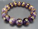 AA-AAA色合い良好より濃い目ファントムアメジスト六字真言金彫り大玉約14mm(誤差有り、約13.6mm-14.4mm)