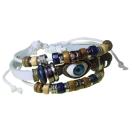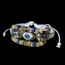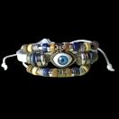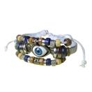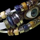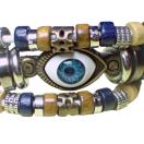 目玉のアクセサリーや、銀色やブロンズ色の装飾された金具の付いたカッコいいブレスレットです。