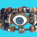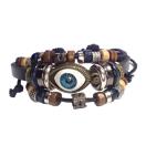 目玉のアクセサリーや、銀色やブロンズ色の装飾された金具の付いたカッコいいブレスレットです。