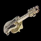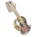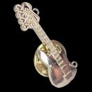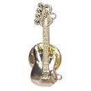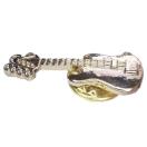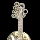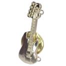 金属製のゴールド色の小さいギターで可愛いバッジです。