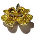 ゴールド色にイエロー色の葉っぱ、大粒と小粒のラインストーンが入って可愛いブローチです。