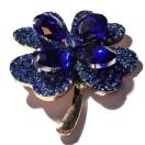 ゴールド色にブルー色の葉っぱ、大粒と小粒のラインストーンが入って可愛いブローチです。