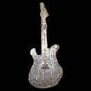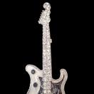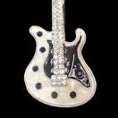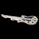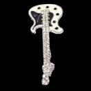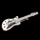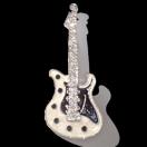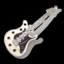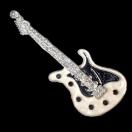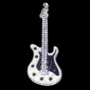 白色と黒色のボディに クリア色のラインストーンが付いたかっこいいギターのバッジです。