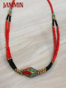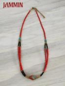 ブラスビーズ、コーラルビーズ、真鍮ビーズを使ったアジアンなネックレスです。