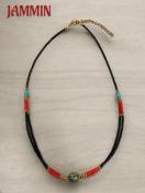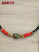 ブラスビーズ、コーラルビーズ、真鍮ビーズを使ったアジアンなネックレスです。