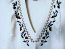 可愛い刺繍と少し深めなVネックの襟ぐりがデコルテ美人を演出し、女性らしさが漂う1枚。ベーシックで取り入れやすく合わせるアイテムを選ばないから、デイリーの着回しに重宝します。