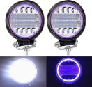 スーパーブライト4.5"コンボLEDライトポッド-ラウンドレッドポッド、16個の高強度フラッドLEDビーズ、8個のスポットLEDビーズ、ブルー色のDRLエンジェルアイを搭載し、鮮明な視認性を実現します。さらに光の距離を