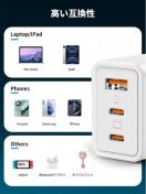 【GaNIII技術によるスマートな充電保護】PD65W充電器は、先進のGaNIII(窒化ガリウム)材料と「3Dチップスタッキング技術」を採用しており、効率的な電力変換と低発熱を実現。過電流、過電圧、過熱などからのデバイス保護機能も備えています。 4、【広範な