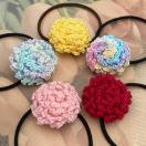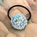 花びらをたくさん編み、ピンポンマムのような丸いお花モチーフのヘアゴムです。
