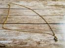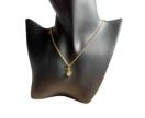 このネックレスは、シンプルながらもエレガントなデザインが特徴です。ペンダント部分には美しいストーンがあしらわれており、光を受けてきらめきます。