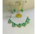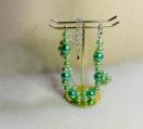 このブレスレットとイヤリングのセットは、黄緑色ビーズを使用した花の形状で、華やかさを演出します。
