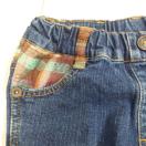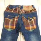お尻の茶色のチェック柄ポケット部分に折れ目あり