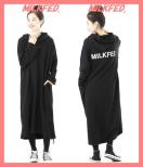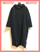 ミルクフェドのかわいい完売裾ジップロゴバックロングパーカーワンピです。