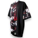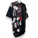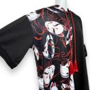 身頃の右側が狐面柄,左側はブラックになったハーフ切替