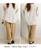 柔らかいフリース素材を使用した、女性向けの上下セットルームウェアです。