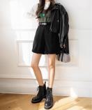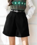 ベーシック短パン黒/脚長見せ 半ズボン/ワイドパンツ細見え