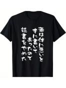 男女兼用 カジュアル コットン Tシャツ 日本語 テキスト プリント - クルーネック、ショートスリーブ、ニット生地、軽いストレッチ、レギュラーフィット、オールシーズンテー