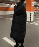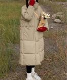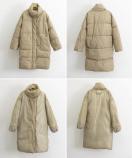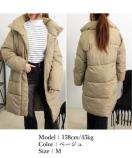 すっぽりハイネック付きで暖かく、ゆったりめのエコダウンロングコートです