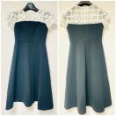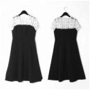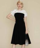 ヨークにビジューを飾った華やかでありながら気品漂う印象のコンビネーションドレス。?肌が透けるデコルテが程よく色気を感じさせつつ、袖付き&ひざ下丈の露出を控えたデザインできちんと感も併せ持った一着です。?歩く度に上品になびく綺麗なフィット&フレアシルエットもポイント。?大人の女性に似合うオケージョンドレスに仕上げました。