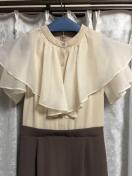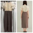 袖のボリュームと異素材がポイントのワンピース。フリルで二重になった袖は透け感のあるシアー素材を使用しているのでボリュームを持ちつつ軽やかな印象になっています。身頃は上身頃とスカートが同素材の合繊で配色になっているので、ブラウスとスカートをコーディネートしたような完成度の高いデザインになっています。上身頃に印象のあるデザインなので、スカートはシンプルにペンシルシルエットが上品さも出してくれ、トップスの華やかさが出て差し引きの完璧な1着です。前立ては飾りになっており、後ろ中心のファスナーで着脱可能になっています。後見頃のウエストはゴムギャザーになっているのでフィット感があり、ウエスト調節も自然にできます。スカートの後中心の裾にベンツスリットが入っているので足捌きがしやすくなっています。締切日時
