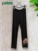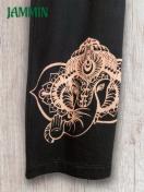 左前に頭が象の神様ガネーシャの抜染プリント入りの黒色のレギンスです。