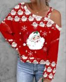 サンタクロースのプリントが施されたドロップショルダーの長袖Tシャツ