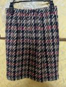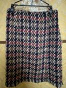 ネイビー、レッド、ベージュのチェック柄が特徴のタイトスカートです。シンプルながらも、目を引くデザインで、さまざまなコーディネートに合わせやすいアイテムです。