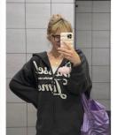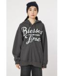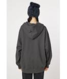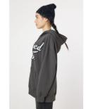フロントまたぎのデザインが可愛いジップパーカー。加工でポソポソになったロゴがポイント。裏起毛で暖かく、アウター代わりにデイリー使いできるアイテムです。