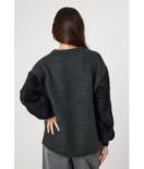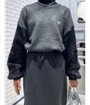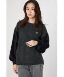 身頃には着心地の良い糸、袖はふわふわしたシャギー糸を使用したニットトップス。シンプルなワンポイント刺繍なので、ボトムを選ばず着用できます。シャギーニットを普段着ない方も合わせやすいアイテム。