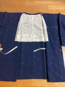 家族が着物店でオーダーし、使わなかったものです。ネイビーベースに同色と少し明るいブルー系の柄です。(画像5柄アップ)