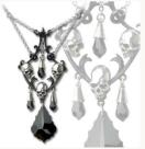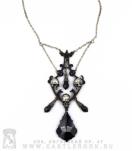 美しいブラック基調のスワロフスキーのシャンデリアとドロッパークリスタル、3つのスカルが、ネックレス全体を華やかに飾ります。ピューター素材の重厚な質感も魅力的。首元に輝くアクセサリーで、まるで貴族のような気分を味わってください。