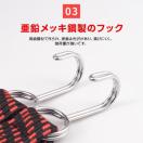 錆びにくい亜鉛メッキ鋼製フック付き。変形しにくく、繰り返し使用可能。
